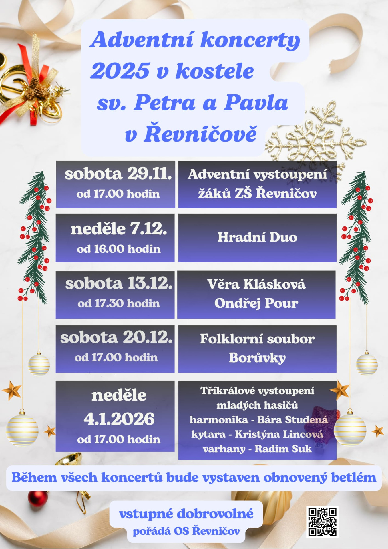 I v letošním roce připravujeme sérii adventních koncertů v kostele sv. Petra a Pavla v Řevničově, během kterých bude vystaven obnovený betlém tentokrát už s povrchovou úpravou a rozšířený o další figurky.